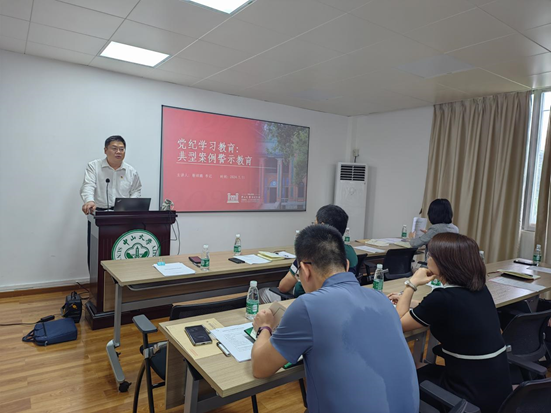 按照学校和机关党委开展党纪学习教育的工作部署,党委学生工作部党总支开展典型案例警示教育,由靳祥鹏同志主讲。靳祥鹏同志指出,典型案例警示教育是用身边事教育身边人,通过开展教育,促使党员把遵规守纪刻印在心,进一步严明党的政治纪律和政治规矩,带动各项纪律全面从严,不断增强自我净化、自我完善、自我革新、自我提高能力。他就违反政治纪律典型案例、违反组织纪律典型案例、违反党的廉洁纪律典型案例、违反党的群众纪律典型案例、违反党的生活纪律典型案例六大类案例进行警示,对每一个案例的情况进行深入浅出的分析,并给出相关解析和提醒。在细致生动的讲解中,用身边发生的鲜活典型案例,为党员敲响警钟,提醒党员牢记初心使命。