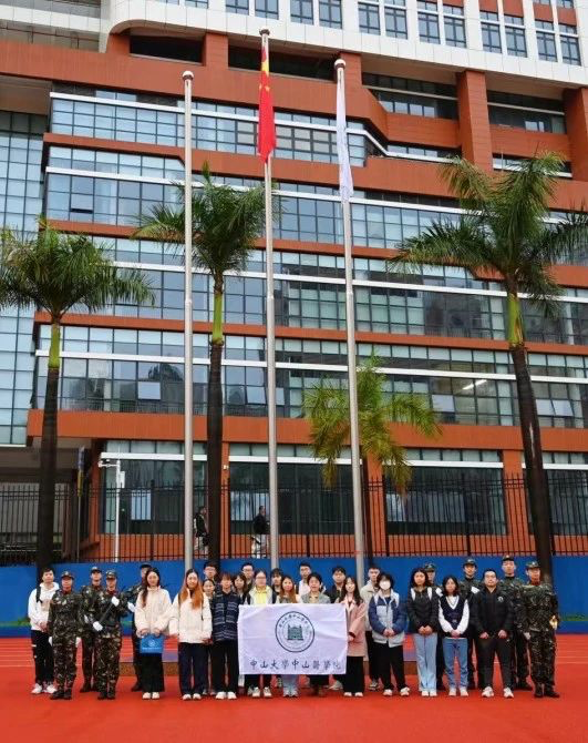 3月11日上午,中山医学院2022级17班临床法医学专业的同学们,与学院团委书记刘少静老师、年级辅导员关芊璇老师一起前往北校园操场参加庄严的升旗仪式。