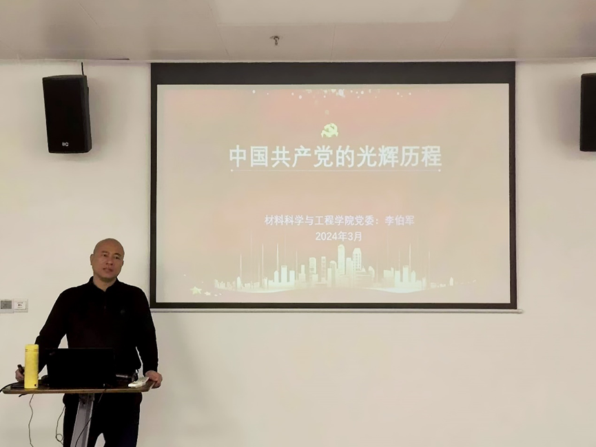 3月18日下午,材料科学与工程学院党委书记李伯军以“中国共产党的光辉历程”为主题,面向学院全体学生骨干开展了一场有理论高度、有思想深度的“开学第一课”。此次课程在广州校区东校园化学材料综合楼B336举行,旨在深化青年学生对党的历史的了解,引导青年学生继承和发扬党的光荣传统。
