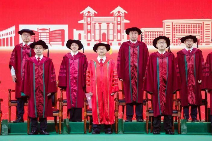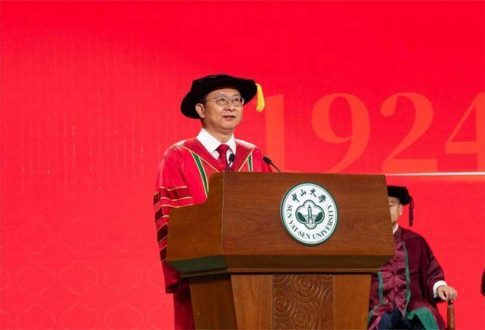陈春声书记因公出访,在致辞最后,高松校长代表学校党委向各位同学送上祝福:希望同学们坚定理想信念,传承红色基因,保持敢为人先的锐气,弘扬踏实肯干的作风,奋力书写为中国式现代化挺膺担当的青春篇章。