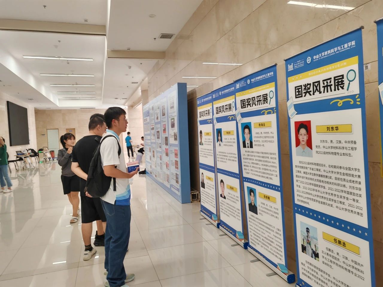 在“材料之路”及“材料之果”展示区,师生穿梭在走廊,了解学院的发展历程与辉煌成就,欣赏最美笔记、实验报告大赛和材料微结构摄影大赛的优秀成果,向优秀的国奖获得者借鉴学习。