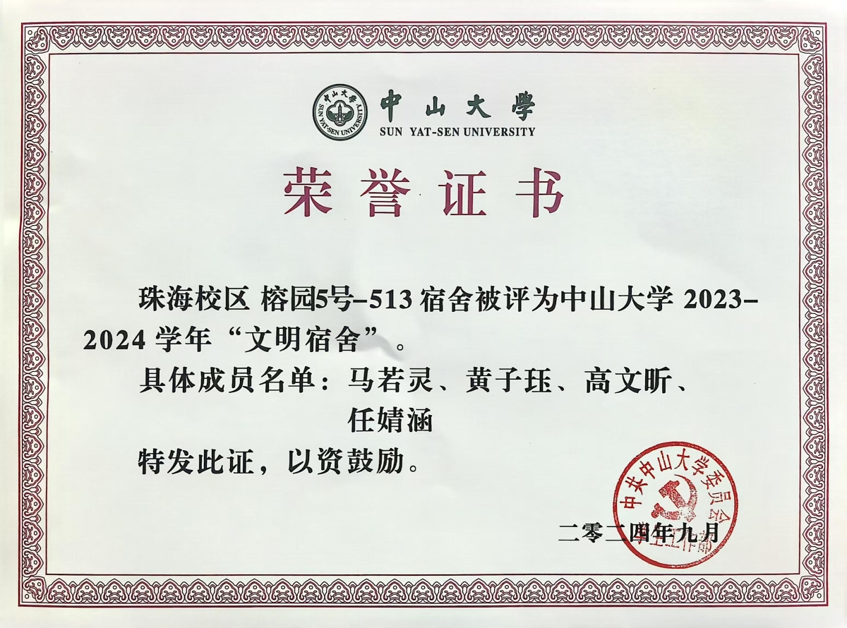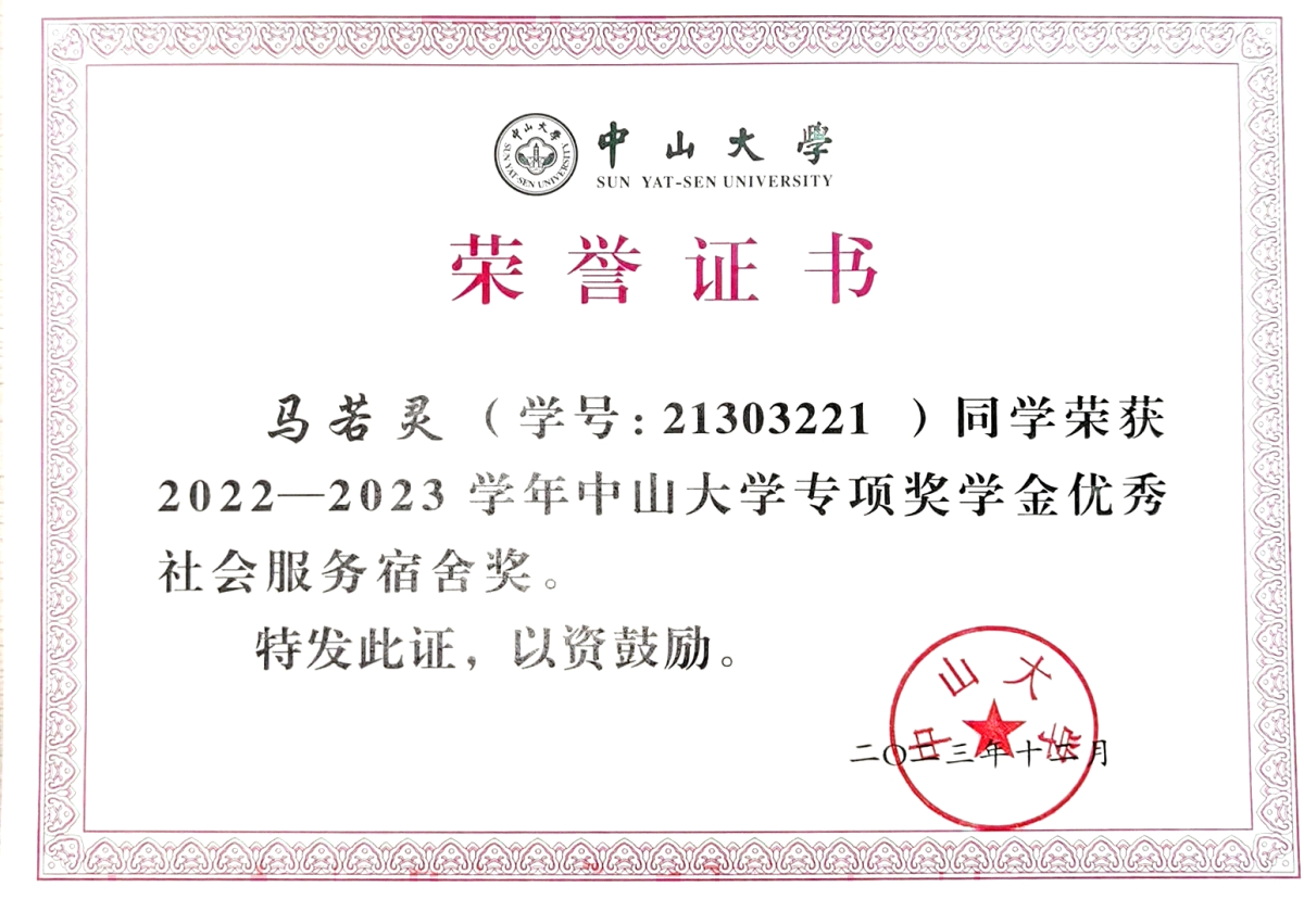 曾被评为优秀学风宿舍及优秀社会服务宿舍奖,