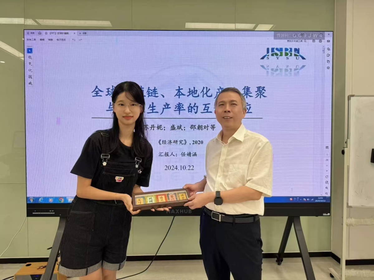 正值百年校庆,任婧涵通过书法作品向黄新飞院长送上祝福(左一)