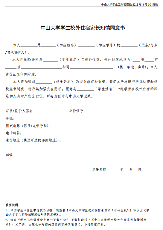 导航痕迹 党委学生工作部 下载中心 宿舍管理服务 3044永利学生校外住宿承诺书、校外住宿家长知情同意书(国内学生版) 扫描此二维码分享 3044永利学生校外住宿承诺书、校外住宿家长知情同意书(国内学生版) 发布人:学生管理办公室 发布日期:2024-11-07 附件:3044永利学生校外住宿承诺书、校外住宿家长知情同意书(国内学生版).docx